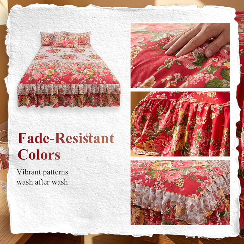 ⏳Limited-time 50% off⏰3-Piece Floral Ruffled Bed Skirt Set💐🛏️