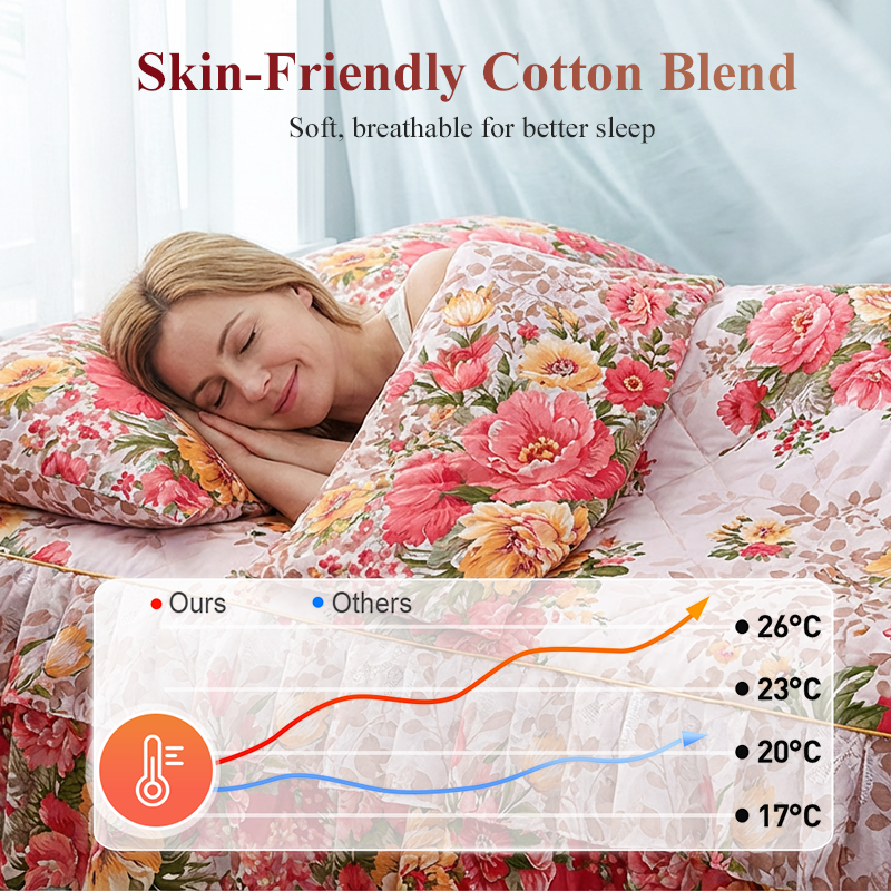 REACTIVE DYEING TECHNOLOGY - This advanced dyeing process ensures the vibrant floral patterns remain bright and will not fade, even after repeated washing, keeping your bedding looking fresh and new for much longer.