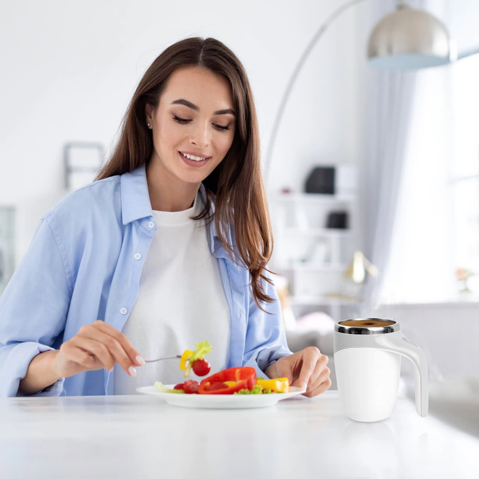 Using smart black technology, simply remove the magnetic beads from the lid and place them on the bottom of the cup. Press again to stop mixing. Featuring advanced self-stirring technology, press the automatic stir button on the cup and the propeller at the bottom will rotate to mix the solute and solvent particles into a beautiful foam. If you press the button again, it will stop mixing. The operation is very simple.