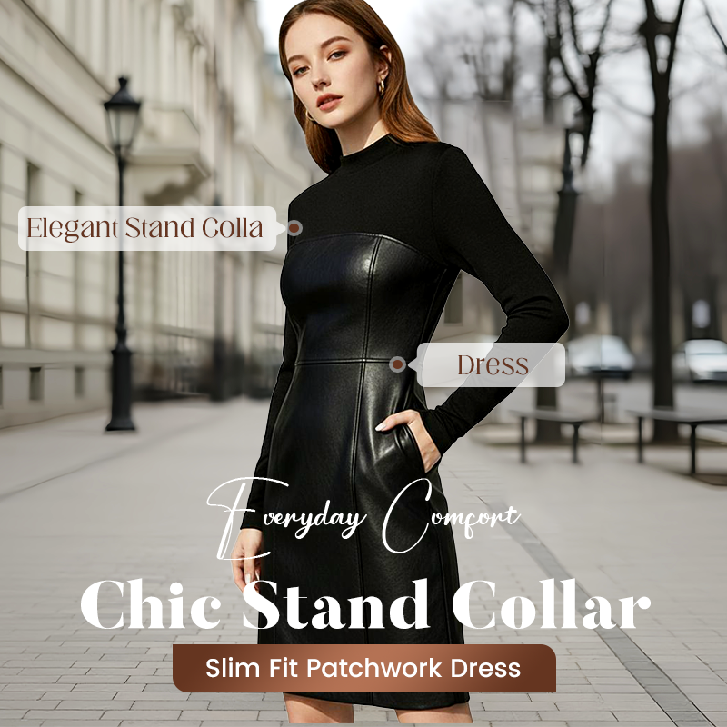 ⏳Limited-time 50% off⏰Chic Stand Collar Slim Fit Patchwork Dress👗