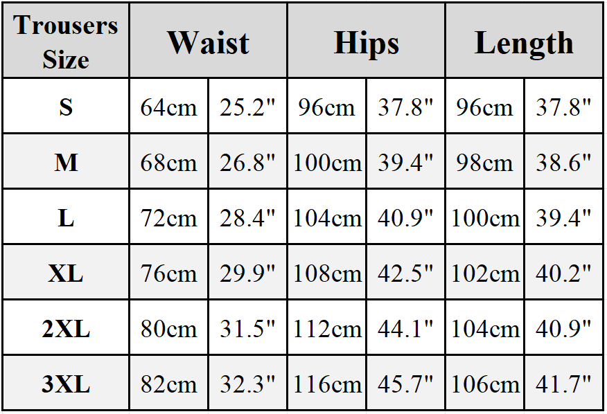 If your top and trousers do not match in size, please select the final size based on your top size!
