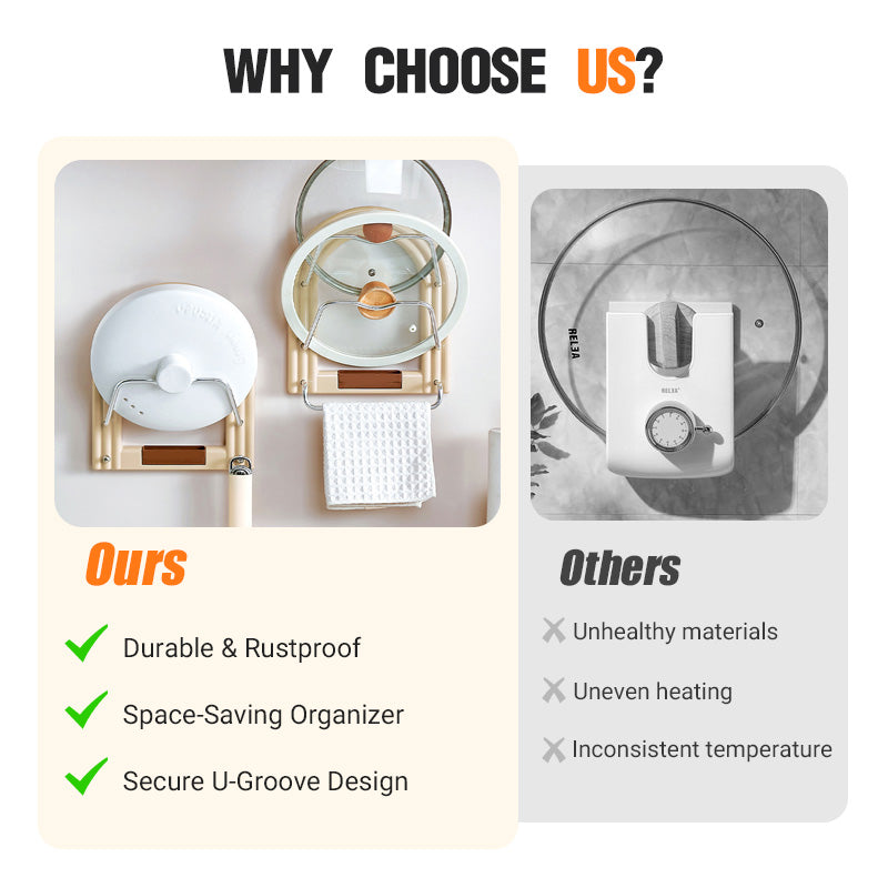 U-SHAPED GROOVE DESIGN - The specially designed U-shaped slots securely cradle pot lids or cutting boards of various sizes. This thoughtful feature prevents items from slipping and falling, ensuring your kitchen stays tidy and organized.