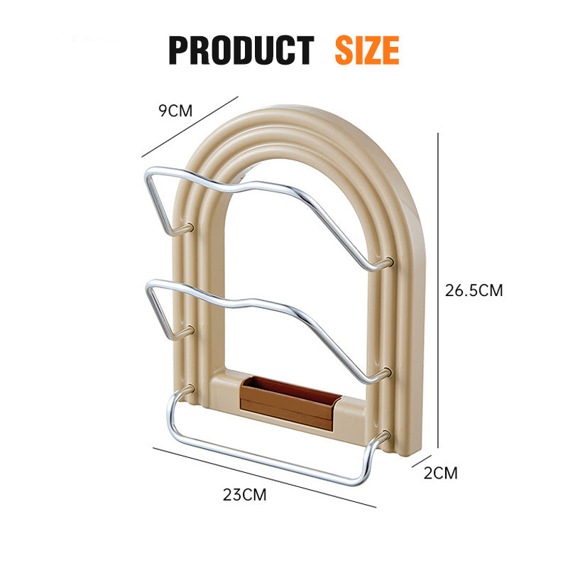 MULTIFUNCTIONAL STORAGE - Available in two styles, including one with an integrated towel rack. This holder conveniently stores pot lids, cutting boards, and kitchen towels, making it a versatile solution for organization.