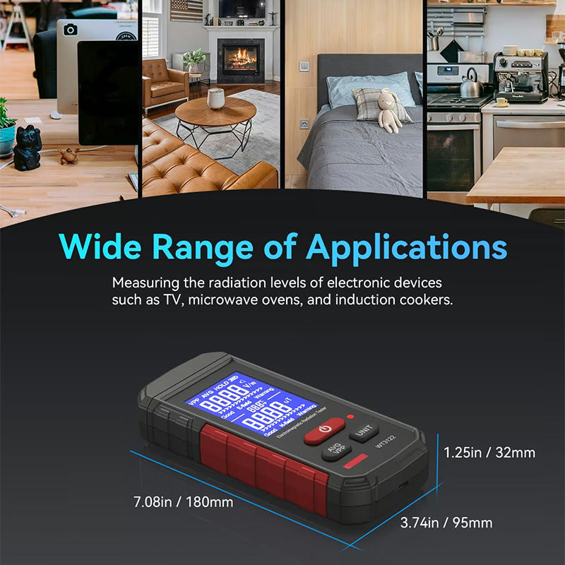 Versatile Uses: The EMF detectors can be widely used to detect EMFs from various electrical appliances in home and workplace, such as TV, computer, microwave oven, refrigerator, outlets and light switches, etc