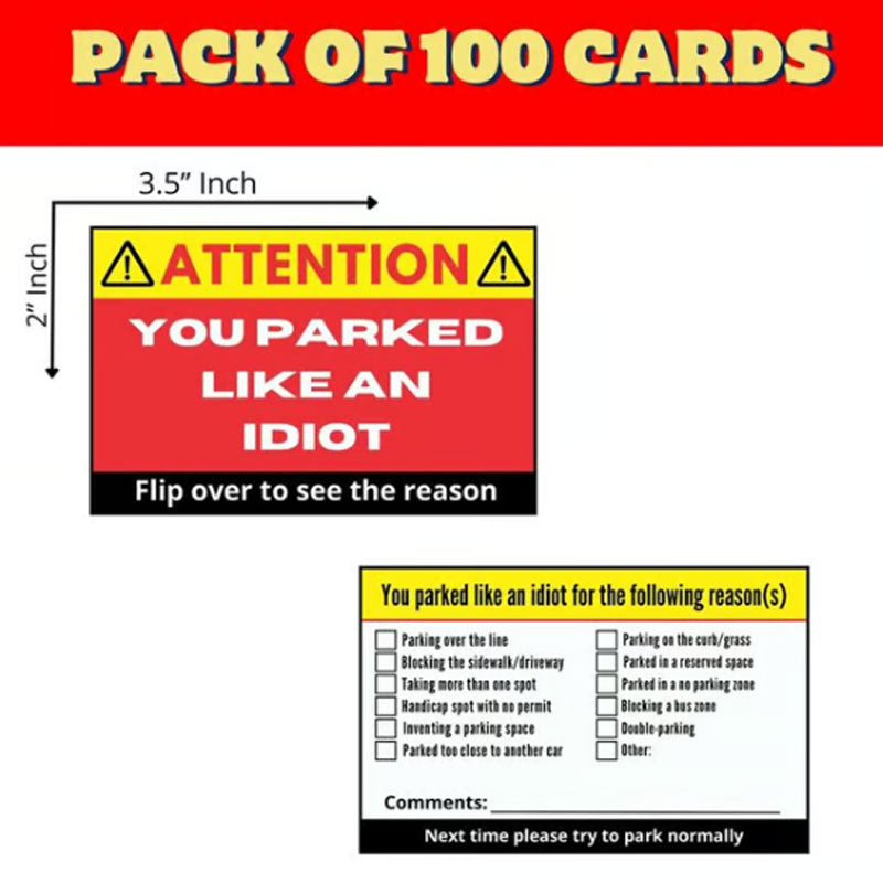 CONVENIENT TO CARRY: Compact and lightweight, each set comes with 10 high-quality paper cards that easily fit in your wallet, car, or bag. You’ll always be ready to hand one out whenever you spot irresponsible parking.