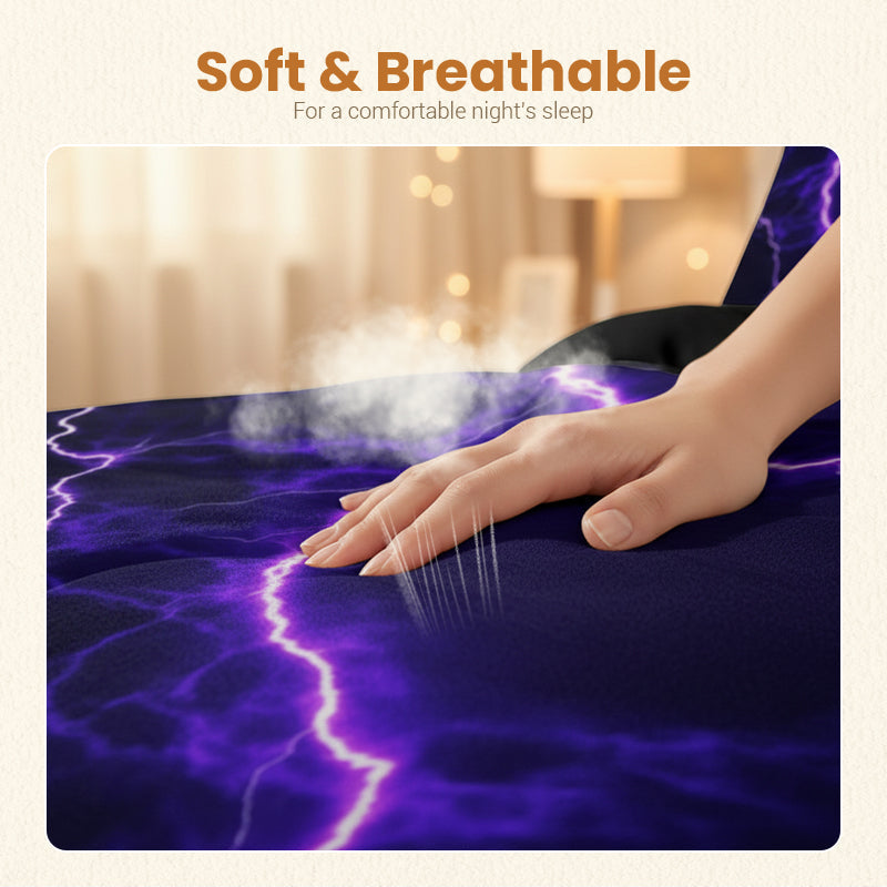 VIBRANT LIGHTNING DESIGN - Instantly electrifies your bedroom with a stunning, high-definition purple lightning print. This dynamic and creative pattern adds a bold touch of energy and modern style to your personal space.