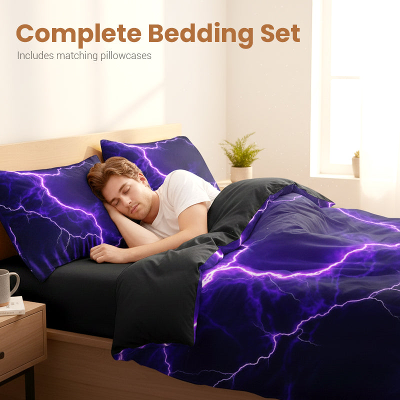 ⏳Limited-time 50% off⏰Purple Lightning Duvet Cover & 2*Pillowcase (3 PCS Set)⚡