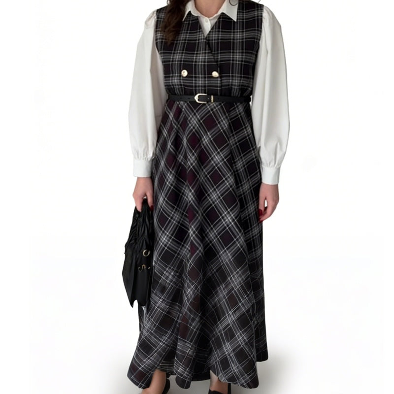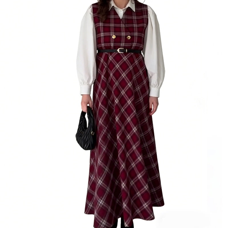 Package Includes: 1 * Women's Sleeveless Plaid A-Line Long Vest Dress with Belt