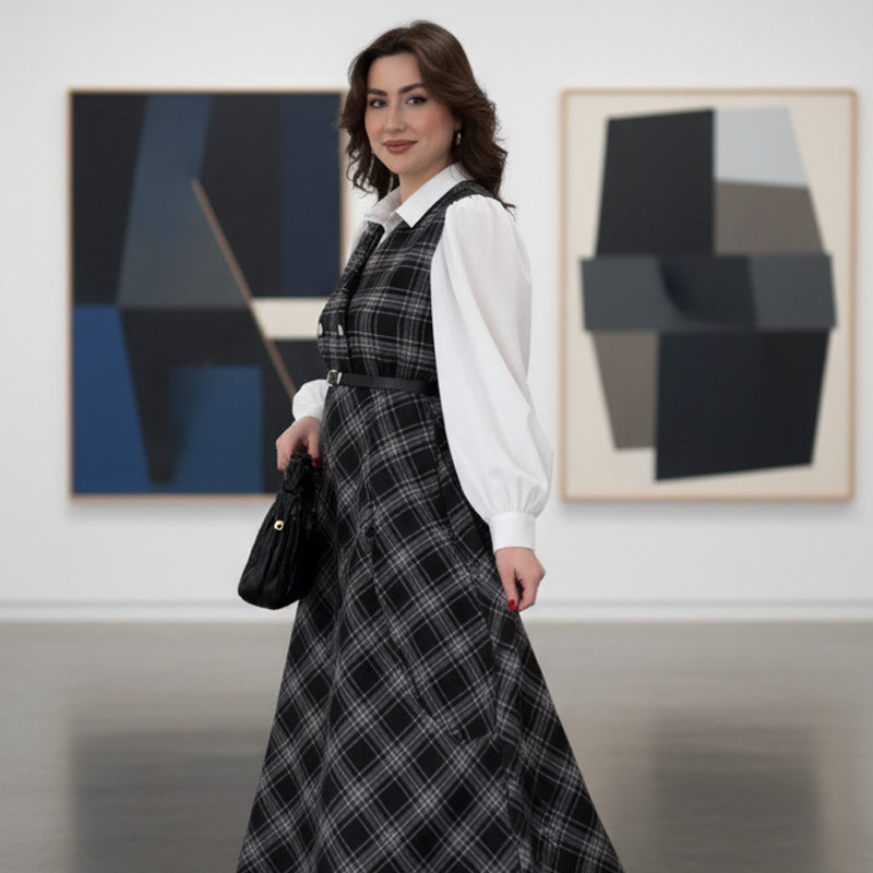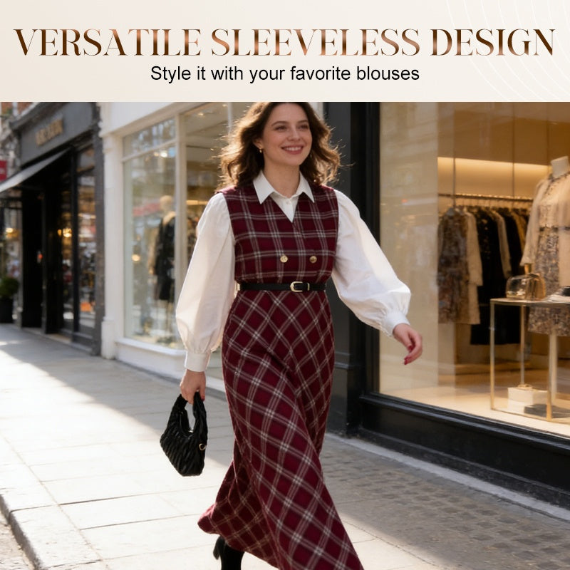 ⏳Limited-time 50% off⏰Women's Sleeveless Plaid A-Line Long Vest Dress👗